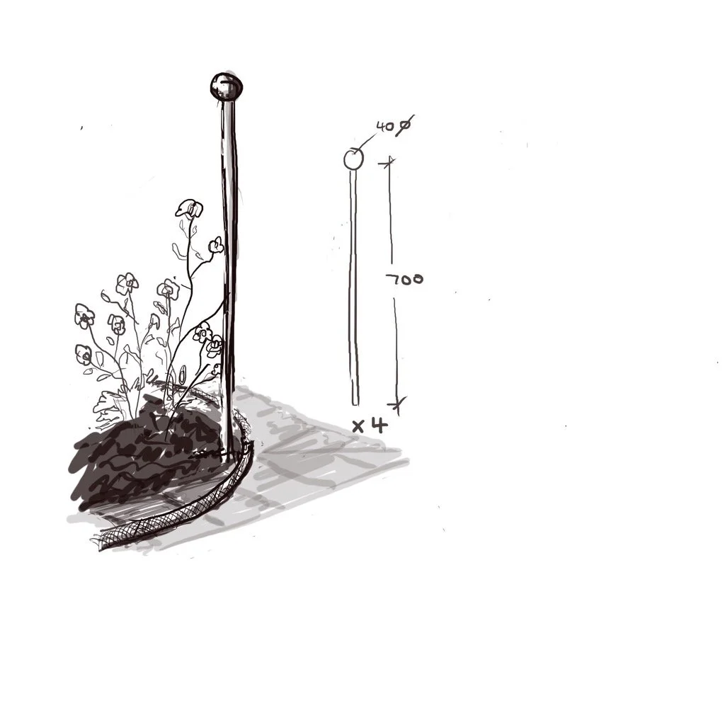 Steel bobble steak for easy tie off of taller plants without the difficulty of pushing in a timber stake and it’ll last forever.